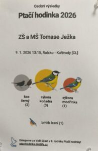 Radost z pozorování byla veliká a celý den se nesl v duchu nadšení, ticha a zvědavosti. Účast v Ptačí hodince nám opět připomněla, jak důležité je v zimních měsících ptákům pomáhat a všímat si přírody kolem nás.