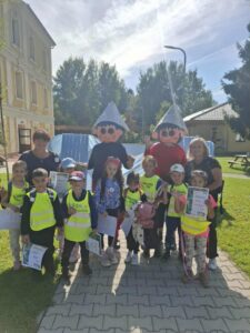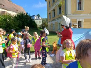 Celý den se nesl v duchu našeho celoškolního projektu „Z pohádky do pohádky“. Červená Karkulka by cestu lesem nenašla bez znalosti dopravních značek, Šípková Růženka by se neprobudila bez první pomoci, Čert by nikam na kole nedojel bez správné výbavy… a tak se i pohádky staly hravou součástí našeho vzdělávání.