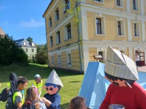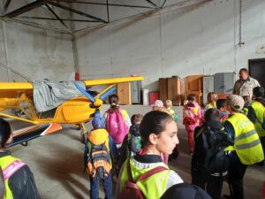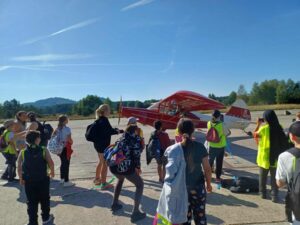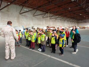 Velkým zážitkem byla návštěva Leteckého klub LAA z.s. Letiště Hradčany nad Ploučnicí, kde Ing. Petr Nejedlý, poutavě vyprávěl o vystavených letadlech, jejich historii i využití v letectví. Na závěr čekalo na všechny děti překvapení – přelet letadla nad hlavami a sladká odměna shozená přímo z nebe.