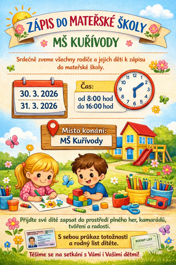 zápis dítěte k předškolnímu vzdělávání pro školní rok 2026/ 2027.